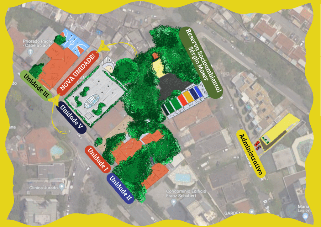 O processo de aprendizagem não se limita somente à sala de aula, mas sim, a todo o ambiente. A interação direta com a natureza, por meio da terra, gramado, folhagens e a possibilidade de explorar os diversos pátios da escola, permite novas descobertas, e incentiva o preparo dos estudantes para o futuro de um mundo mais sustentável.